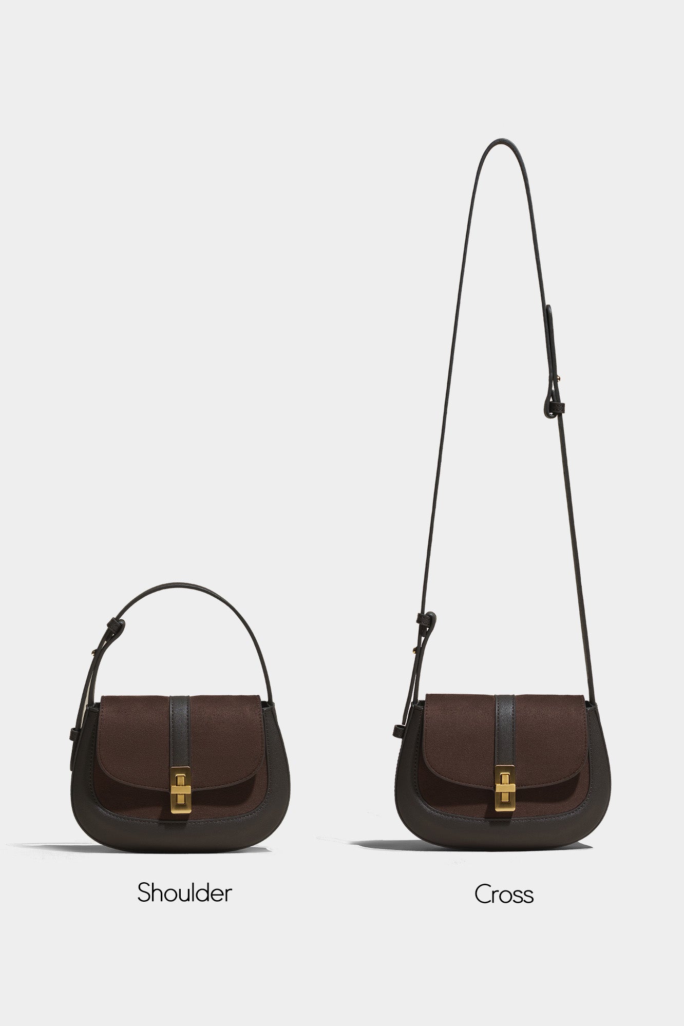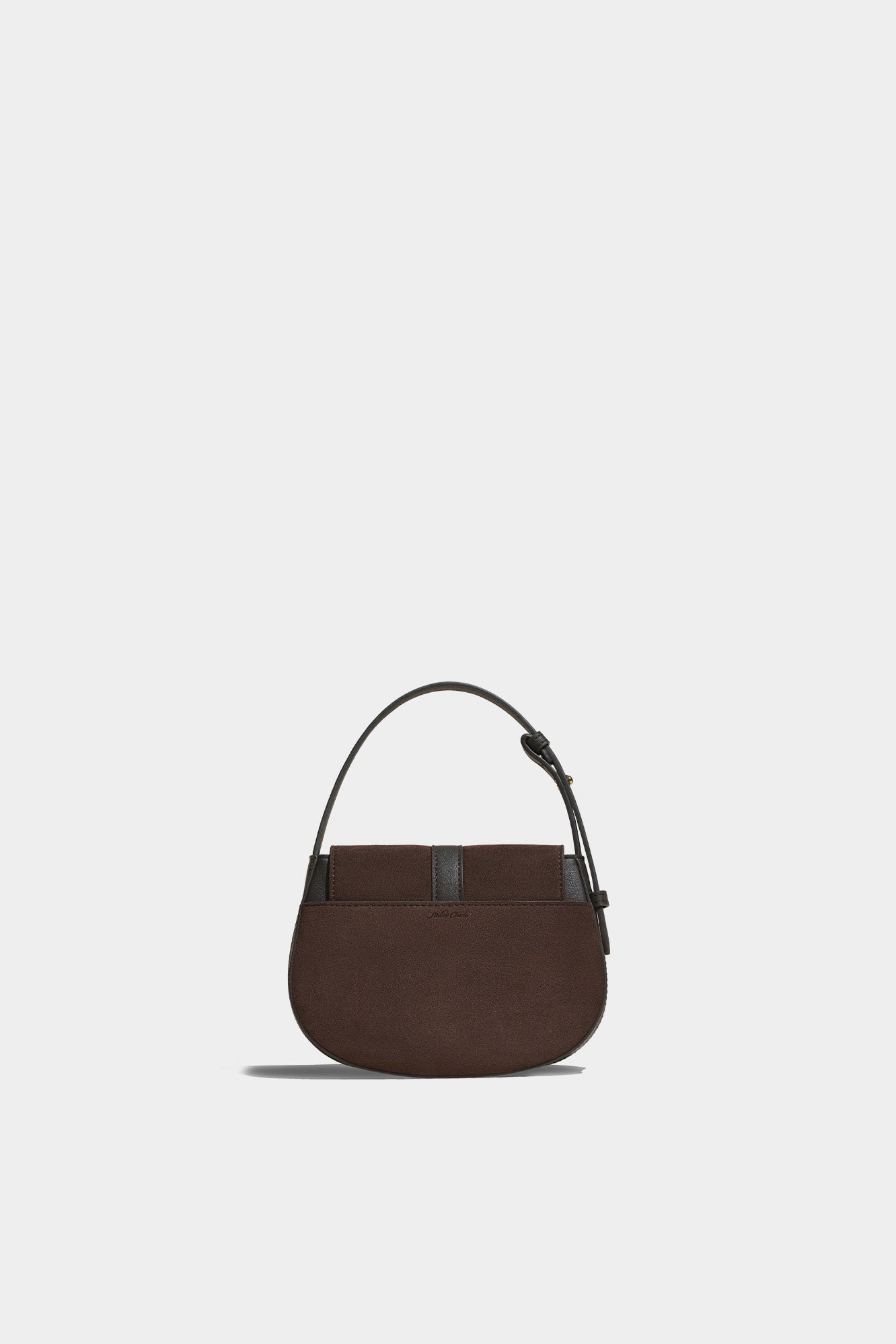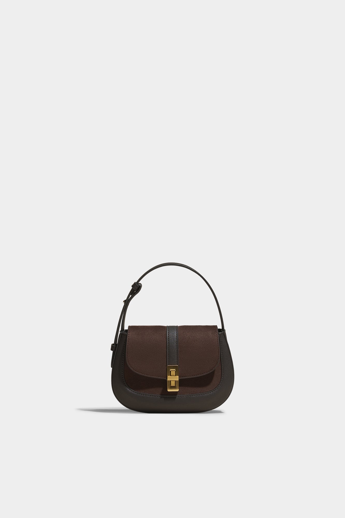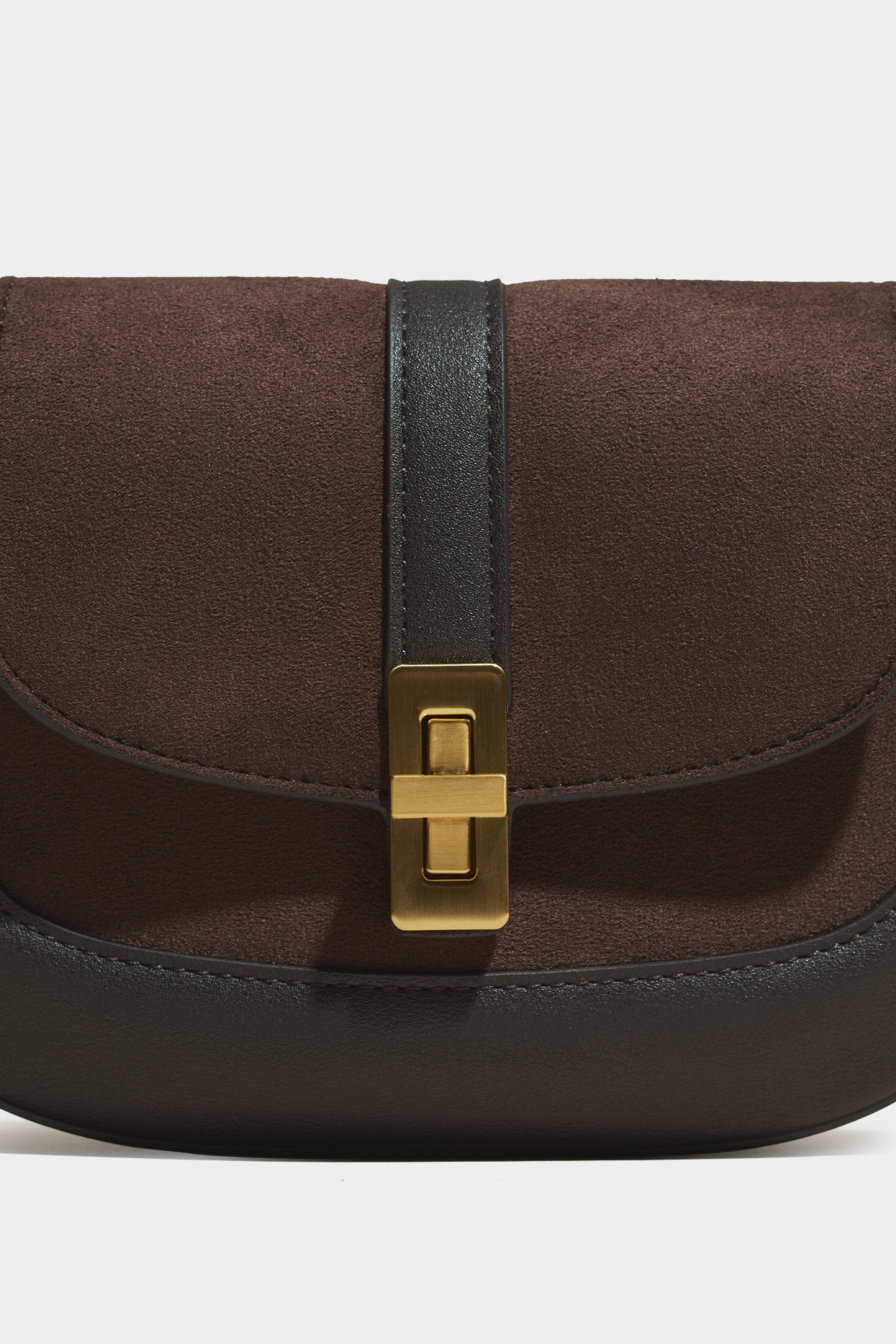 The deep walnut shade of the suede stands out in this unique combination of two materials.