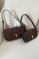 The deep walnut shade of the suede stands out in this unique combination of two materials.