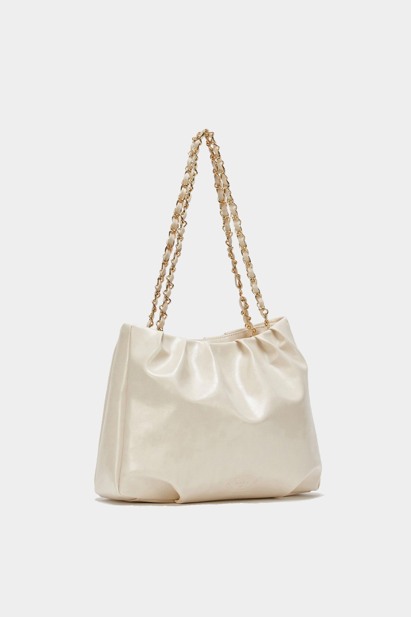 A wide single-compartment interior and two internal pockets offer practical convenience, while the Gold chain strap adds a refined, sophisticated touch.