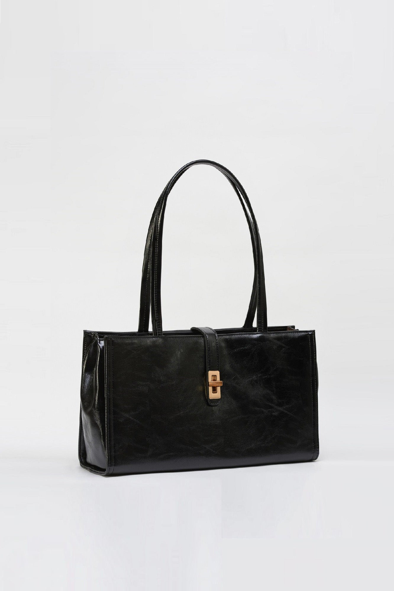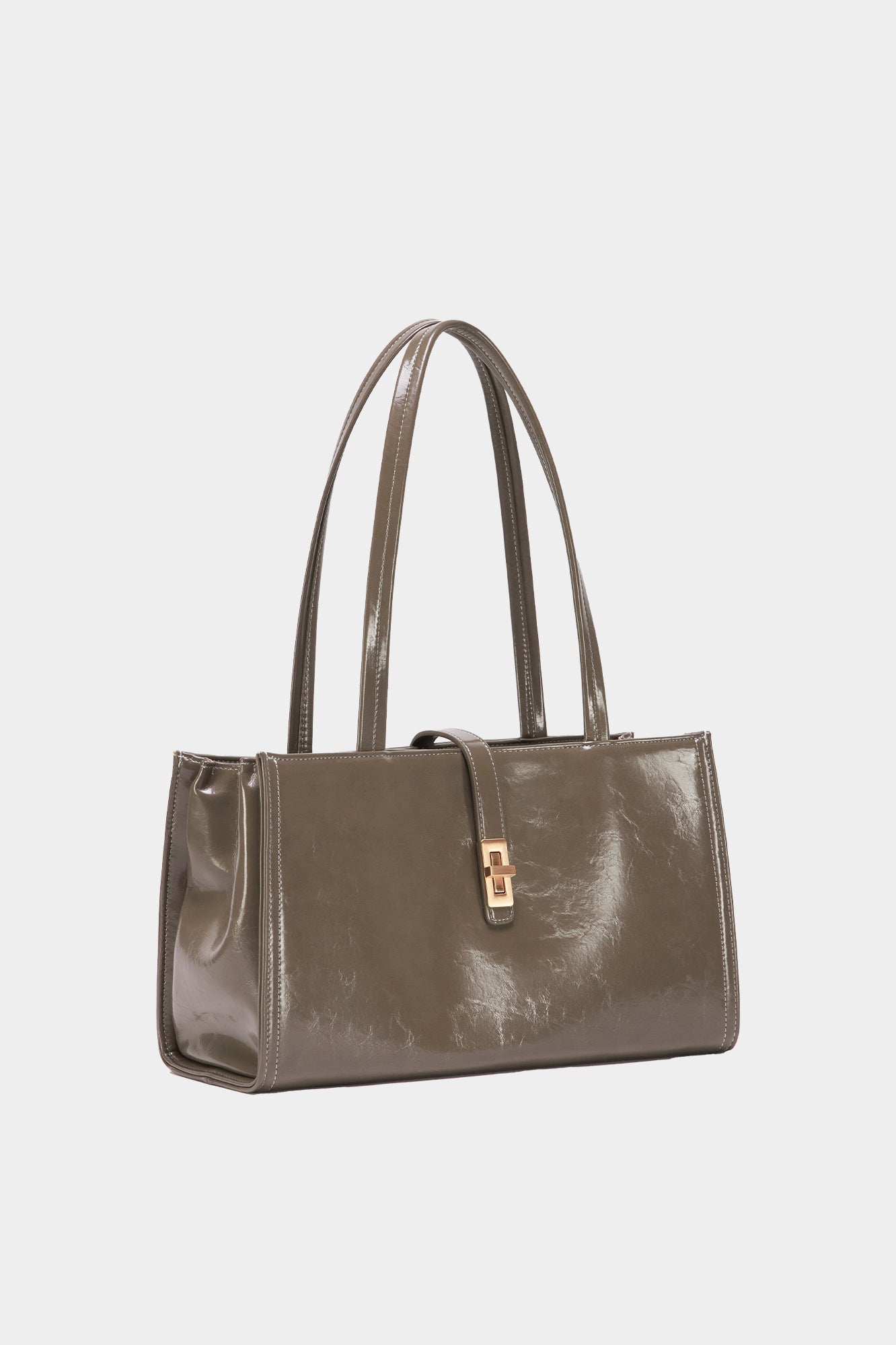Designed with a wide single-compartment interior and two versatile pockets one external and one internal it offers practical storage for daily use. A high-sheen, satin-finished Rose gold hardware accent at the center adds a refined, modern touch.